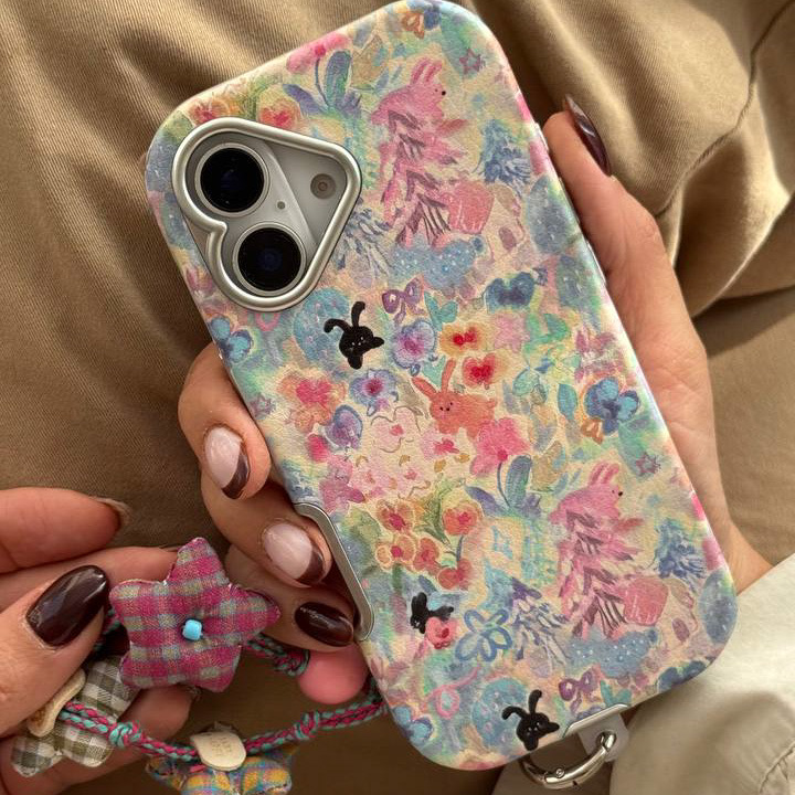 با قاب موبایل آیفون خرگوش واندرلند به گوشیتان جلوهای فانتزی و جذاب ببخشید! این قاب با طراحی منحصر بفرد خرگوش و همراه با بندست گل پارچهای، هم زیباست و هم کاربردی. از گوشیتان در برابر خراش و ضربه محافظت کنید و همزمان استایل خاص خود را نشان دهید. همین حالا خرید کنید و متفاوت باشید!