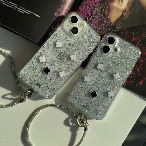 قاب موبایل آیفون خرگوش واندرلند + بندست گل پارچه ایC006781